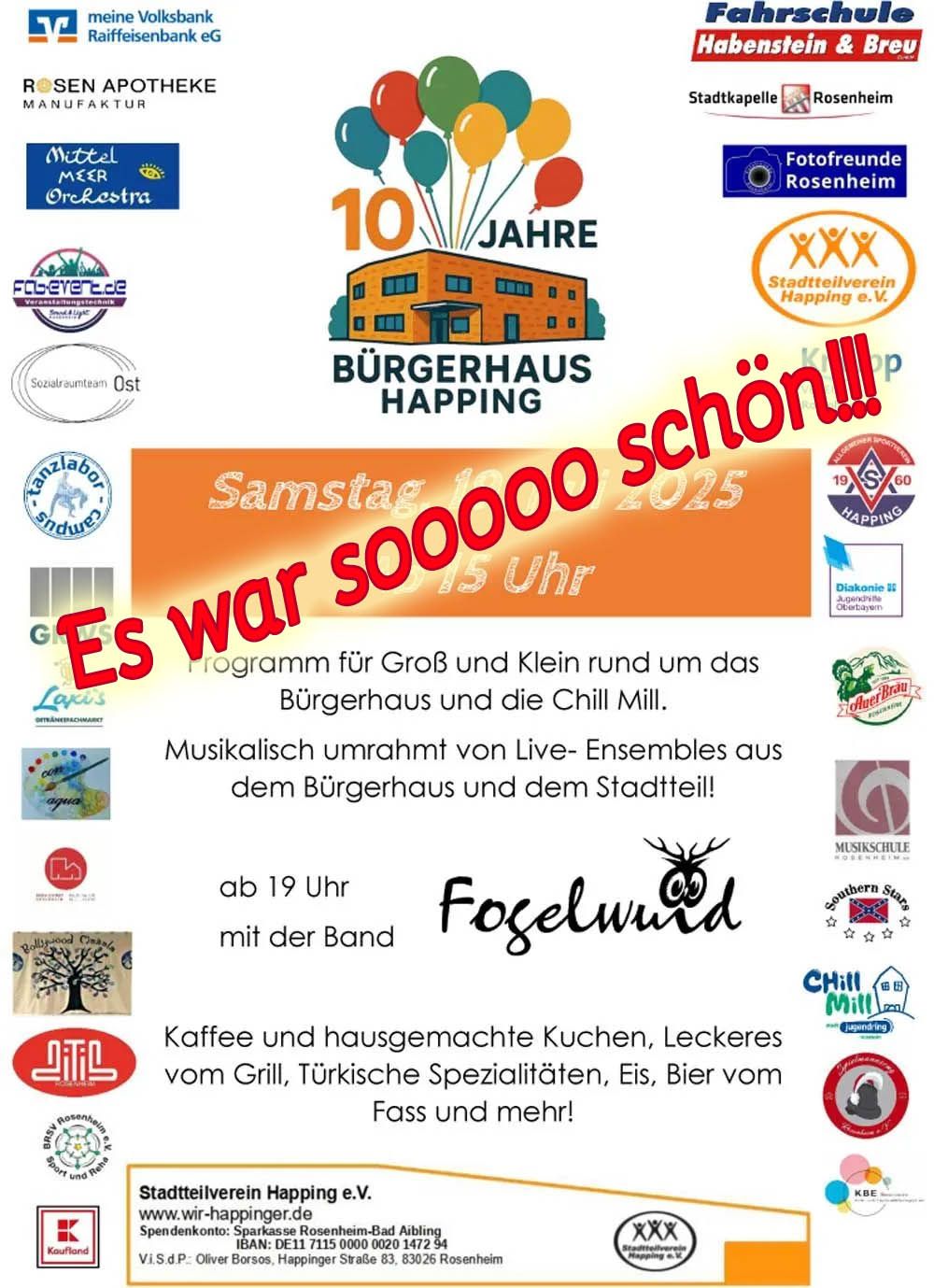 Am 19. Juli 2025, bei herrlichem Sommerwetter, feierten hunderte große und kleine Gäste das 10jähre Bestehen des Bürgerhaus Happing!