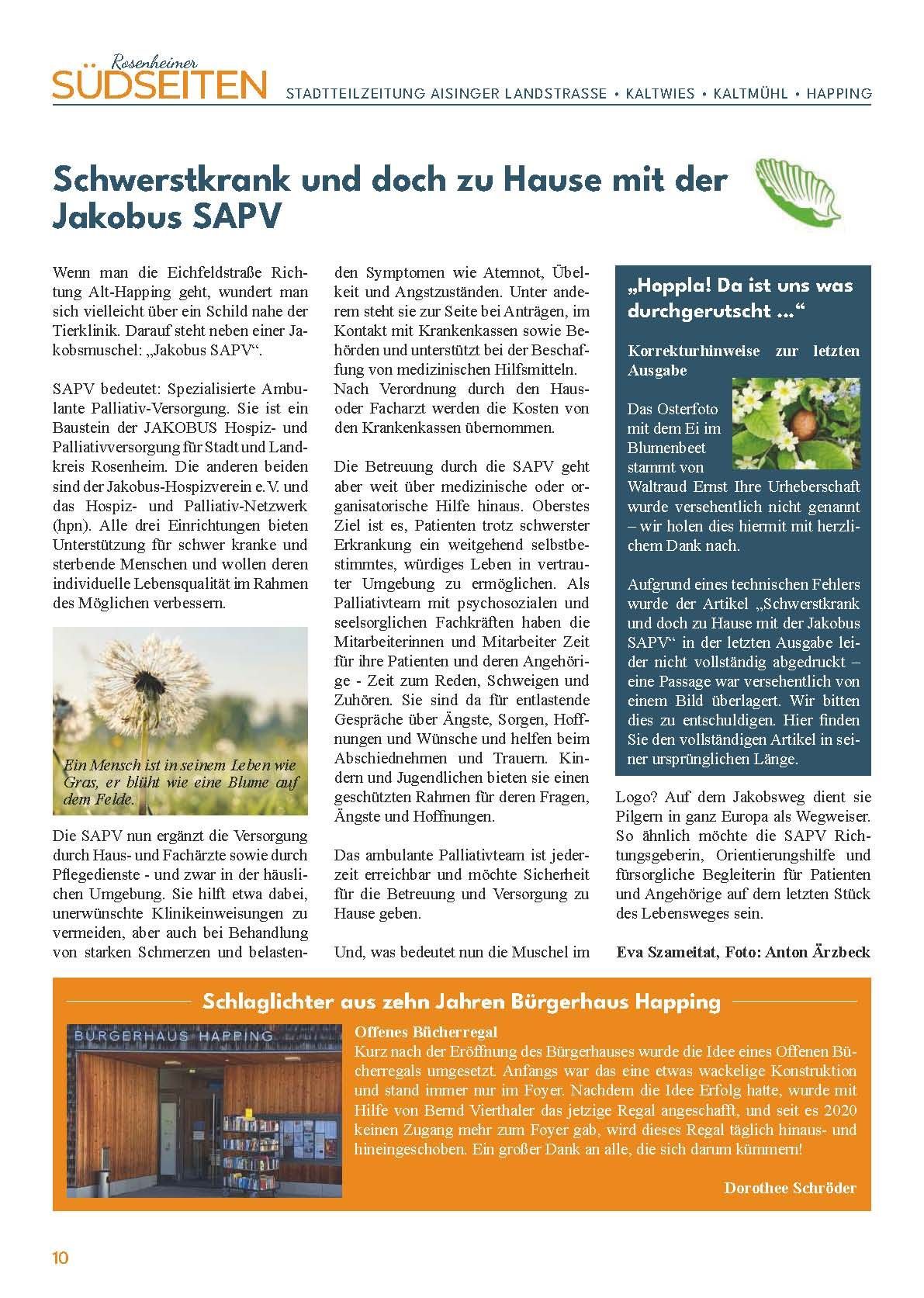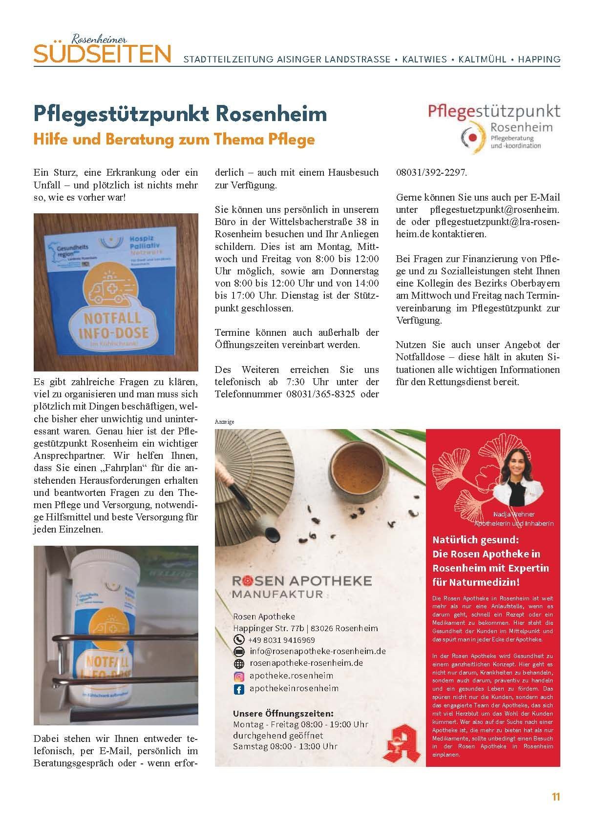 Seit über 15 Jahren bereichert die Zeitung „Rosenheimer Südseiten“ das Leben in unserem Stadtteil. Dreimal jährlich versammelt sich ein engagiertes Team aus ehrenamtlichen Redakteurinnen und Redakteuren im Bürgerhaus, um kreative Ideen, interessante Texte und beeindruckende Bilder für die nächste Ausgabe zusammenzutragen.